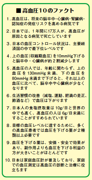 今回はガイドライン作成委員会が発表した「高血圧の10 のファクト」について紹介しましょう。