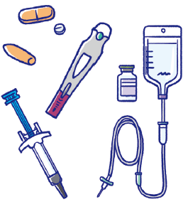 血球成分除去療法は、片側の腕から血液を抜いて、炎症の原因となっている白血球を血球細胞浄化器を用いて取り除き、残りの血液を反対側の腕から体内へ戻す治療法です。抗TNF-α抗体薬は炎症を起こすTNF-αというタンパク質の働きを抑える注射薬で、自己注射が可能な薬もあります。