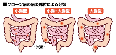 クローン病は病変が発生した部位によって、小腸だけに炎症がみられる小腸型、小腸と大腸の両方に炎症がある小腸・大腸型、炎症は大腸のみに限られる大腸型に分類されます。なお、病名は、この病気を1932年に世界で初めて報告した、米国の内科医・クローン医師に由来します。