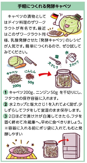 そのほか、キャベツにはカルシウム、食物繊維、ビタミンCも豊富です。ビタミンCは抗酸化作用が強く、体の酸化・老化予防に役立つほか、コラーゲンをつくり出して、筋肉や皮膚を丈夫にしてくれます。